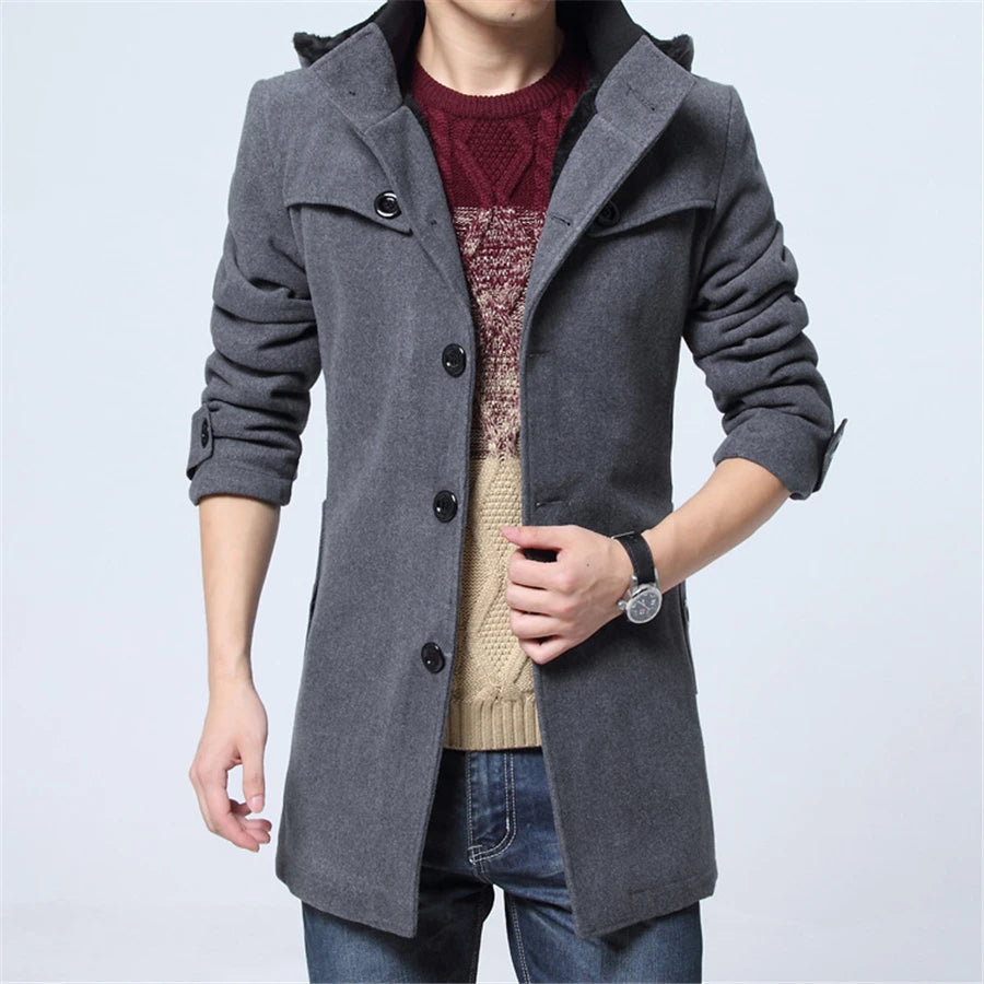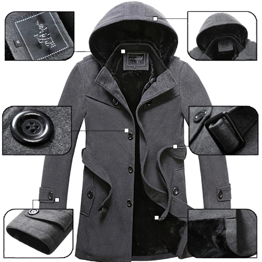 2024 Winter Trench Coat Men Fashion Long Overcoat Male Hot Sale Woollen ootwear Thick Men's Clothing Size 4XL Wool Jackets
